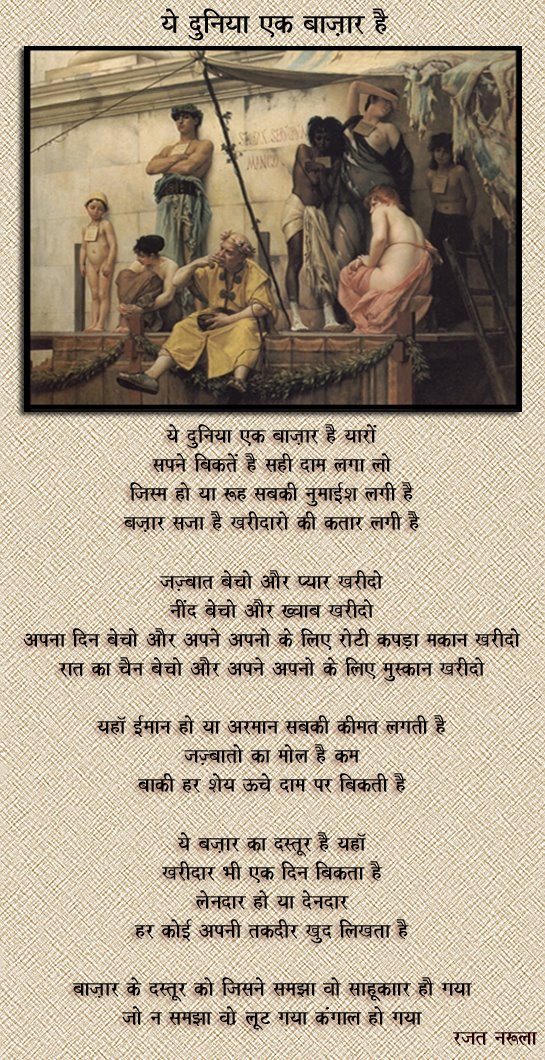 – आज की बाजार आधारित अर्थ व्यवस्था का सटीक चित्रण.