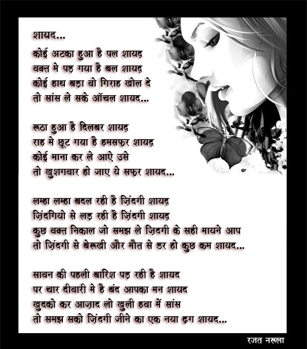 अल्पना वर्माApril 29, 2009 at 3:05 PMPermalink Rajat ji,aap ke blog par aa kar achcha laga. aap ka ‘post present karne ka style bilkul unique hai. really bahut hi alag aur anootha..mujhey pasand aaya ..painting bhi shayd aap ne hi banyee hai.. -us par likhi kavita bhi bhaav bhari abhivyakti hi hai,painting ko compliment karti hui. Reply